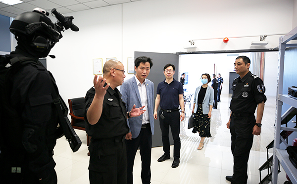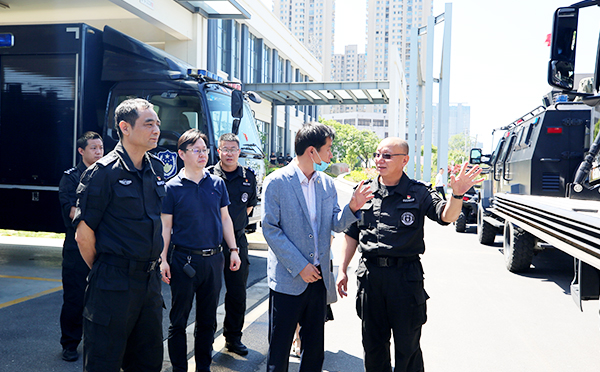 無錫巡特警支隊領導參加了此次捐贈儀式,并帶領日聯科技捐贈代表參觀了特警裝備和特警車輛,還開展了座談會,互相交流各類公共安全防控技術。日聯技術人員也為巡特警支隊同志們詳細介紹了測溫門的原理與操作。