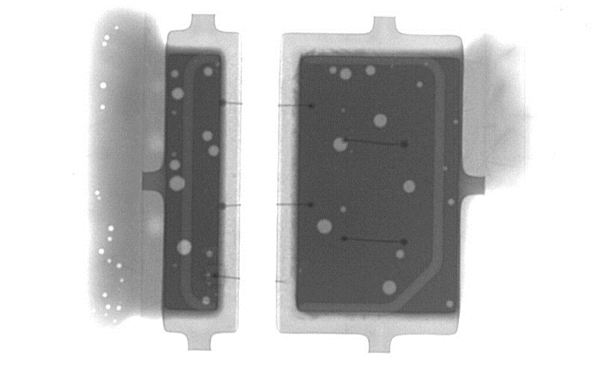 X-RAY檢測設備通過穿透樣品、檢測樣品內(nèi)部缺陷,是當前非破壞檢測內(nèi)部缺陷效率且快速的方法只要。LED燈條板的主要故障集中在綁定金線。利用X-RAY檢測設備對LED燈條檢測并生成的影像圖,可以清楚的看到LED燈條內(nèi)部金線的位置以及有無開路、短路等異常。