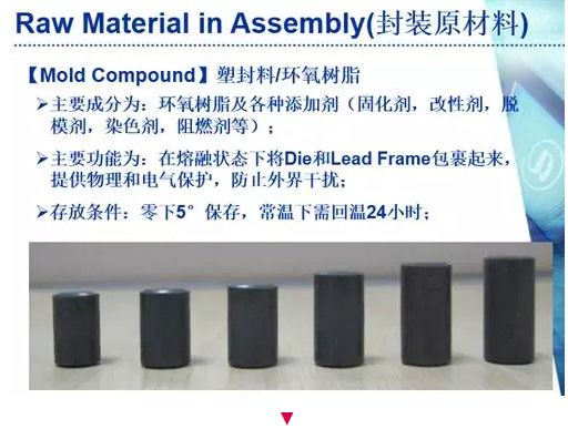 ?EMC (塑封料)為黑色塊狀,低溫存儲,使用前需先回溫。其物性為:在高溫下先處于熔融狀態(tài),然后會逐漸硬化,最終成型。